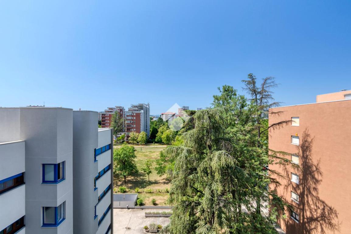 L'appartamento molto luminoso, arieggiato, silenzioso, riservato, posto all'ultimo piano, è costituito da 3 ampie camere da letto che si affacciano sul ben curato e rigoglioso parco condominiale, 1 ampio soggiorno con balcone con vista sul verde, 1 ampia cucina abitabile stessa vista, 2 bagni, 1 ripostiglio e 1 ampia cantina inclusa.