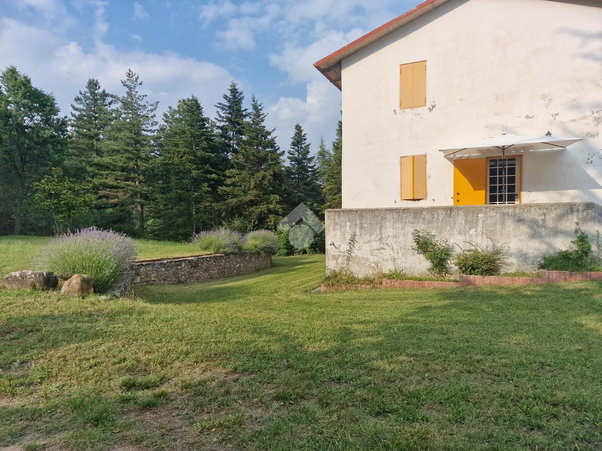 All'interno di una splendida cornice collinare di elevato pregio ambientale e naturalistico, proponiamo un raro compendio immobiliare composto da due unità abitative in complesso condiviso con un'altra proprietà, pertinenze accessorie e oltre 20 ettari di bosco in comproprietà attraversato da sentieri e strade interne, ideale per amanti della natura, escursionismo e privacy totale.