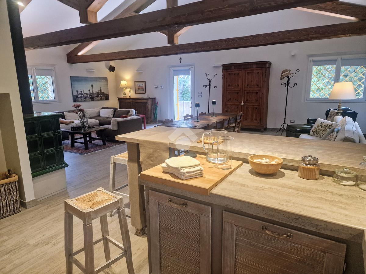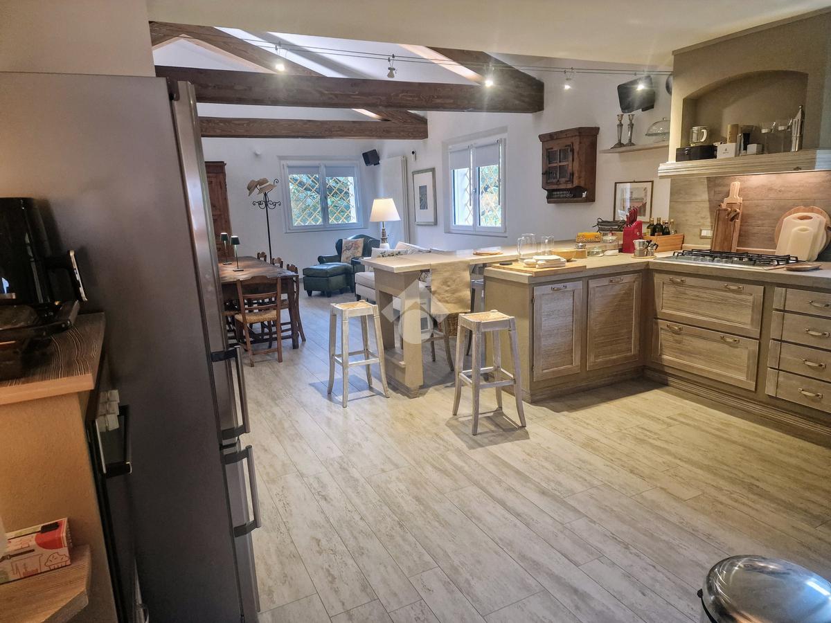 Elegante ristrutturazione con finiture di pregio Tetto con capriate a vista, coibentatoCappotto interno e infissi triplo vetroAmpio open space con altezze importantiCamino ventilato Palazzetti in ceramica (12kW), riscalda l'intero ambiente anche in pieno invernoTermoarredo elettrico in bagnoPannello solare per produzione acqua caldaPertinenze & Accessori